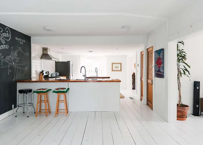 Willa Bloomfield Bliss - Hot Tub And Walking Distance To Park obejmuje pełnowymiarową kuchnię z ekspresem do kawy/herbaty, lodówką i piekarnikiem. Restauracja Prince Edward County Wine Tours, serwująca szeroki wybór dań, leży w odległości 12 min spacerem.